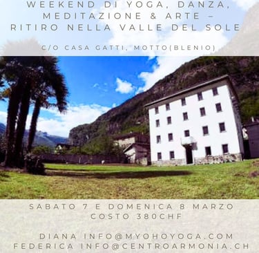 Un fine settimana per accompagnare il passaggio dall’inverno alla primavera presso Casa Gatti, un'accogliente pensione familiare nel cuore della Valle di Blenio. Luogo perfetto per un ritiro primaverile in Ticino all’insegna di yoga, arte, meditazione e danza di consapevolezza corporea, condotto dalla sottoscritta e da Federica Dubbini.
